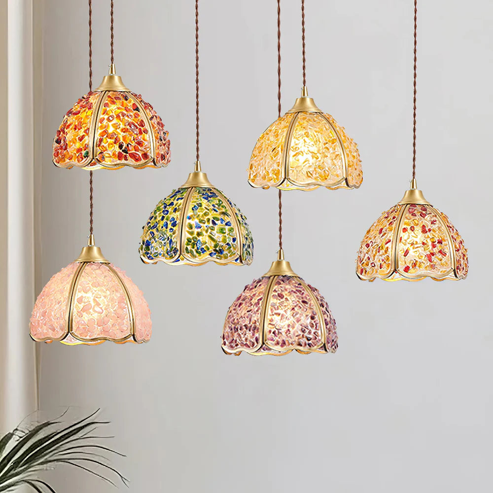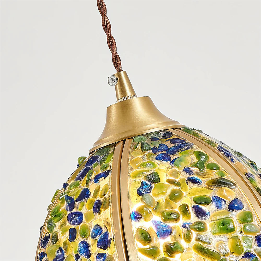 The Tolefa Pendant Light adds artistic color and warm illumination to dining rooms, kitchens, and living spaces. This glass pendant light features agate glass with rich tones, framed by a refined brass finish that enhances both modern and decorative interiors. Ideal as a dining table pendant light or accent lighting above a kitchen island, it creates an inviting atmosphere while remaining compact in size. The adjustable hanging cable allows flexible installation heights, and compatibility with LED bulbs makes this pendant light suitable for everyday indoor use.