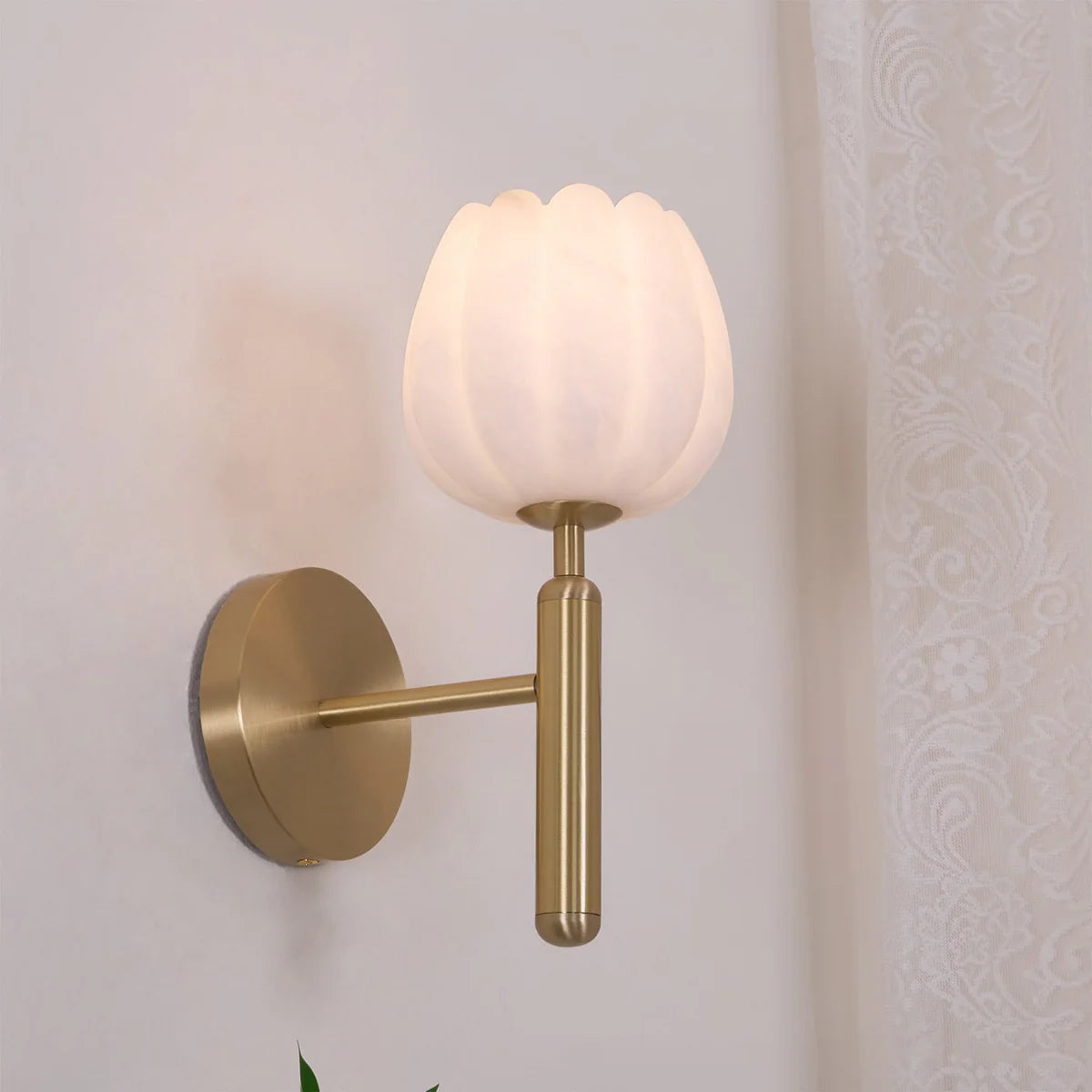 The Loza Flower Albaster Wall Light is an elegant wall light that combines sculptural alabaster with refined brass details. Inspired by organic flower shapes, this wall light creates a soft and atmospheric glow that enhances modern and classic interiors alike. Designed for indoor use, the Loza Flower Albaster Wall Light works beautifully as a bedside wall light, hallway wall light, or accent wall light in living spaces. Its compact size and natural stone texture make it a subtle yet eye-catching lighting element.